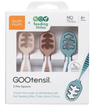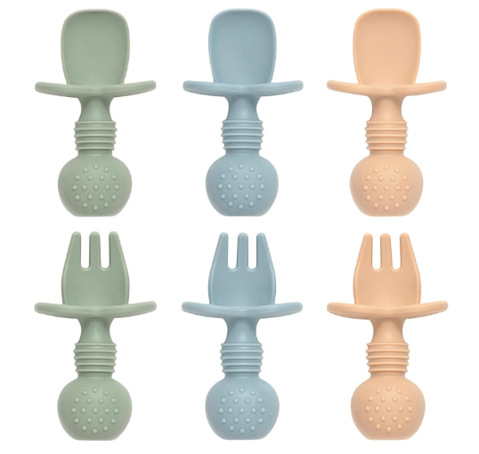 Self Feeding Spoons (their first spoon) I love to recommend these spoons for babies starting solids. I like to mash soft foods like avocado, banana, or moist rice right into the utensil. Then, I hand my baby the pre-loaded spoon and let them self-feed. It’s a great way for them to learn how to bring a utensil to their mouth without much food falling out!